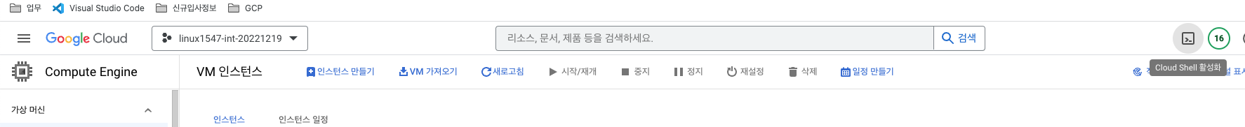 - Cloud Shell로 gcloud명령어 실행