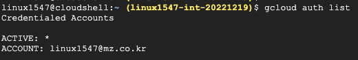 gcloud config set account 'ACCOUNT'로그인 확인gcloud auth list프로젝트 리스트 확인gcloud config list project