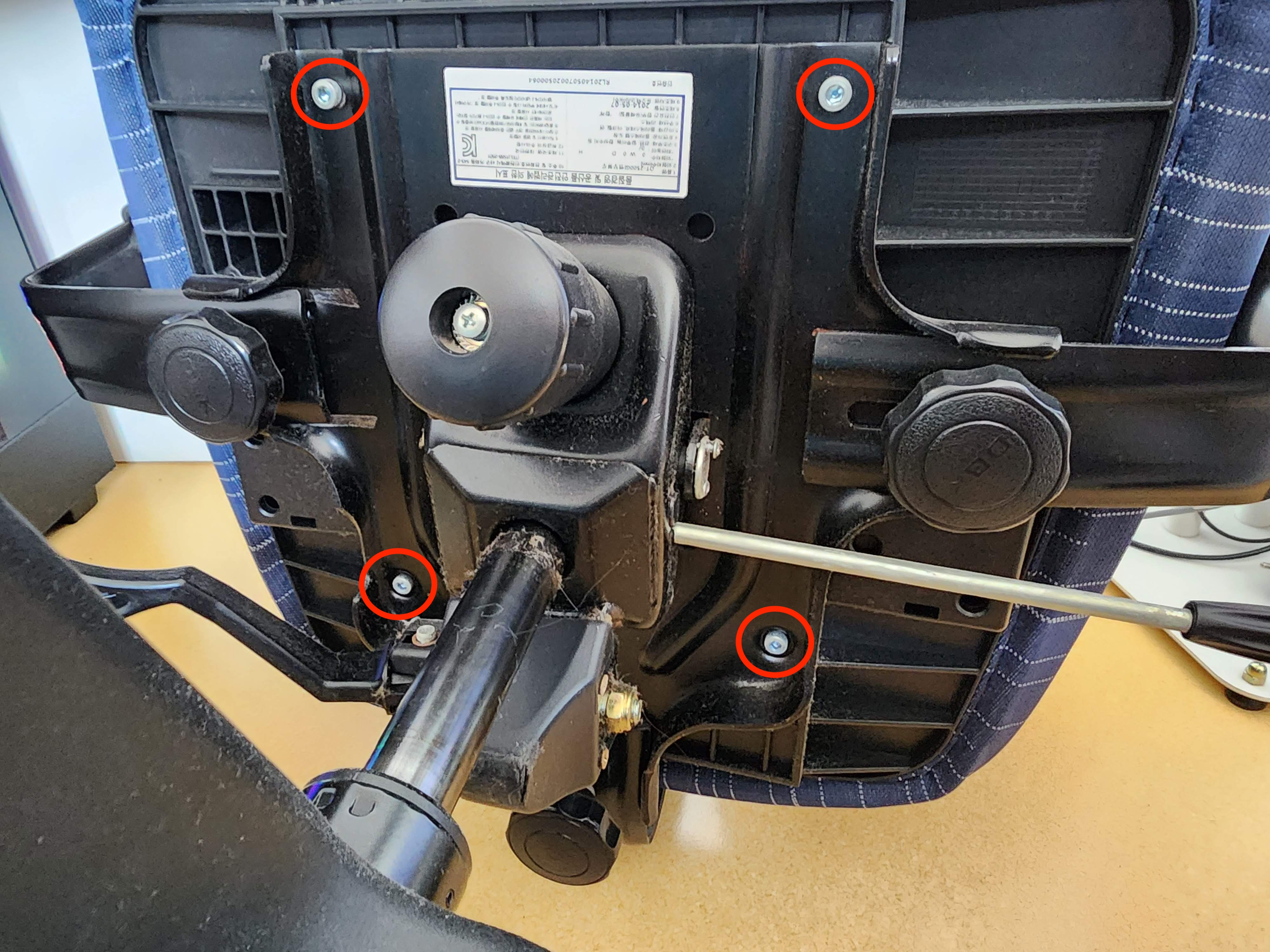 그 이후에는 신규 좌판을 자리에 맞게 한 후 위의 볼트 4개를 꽉 주여주면 끝