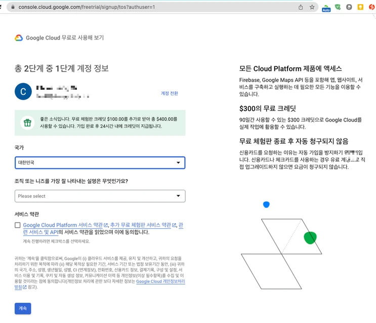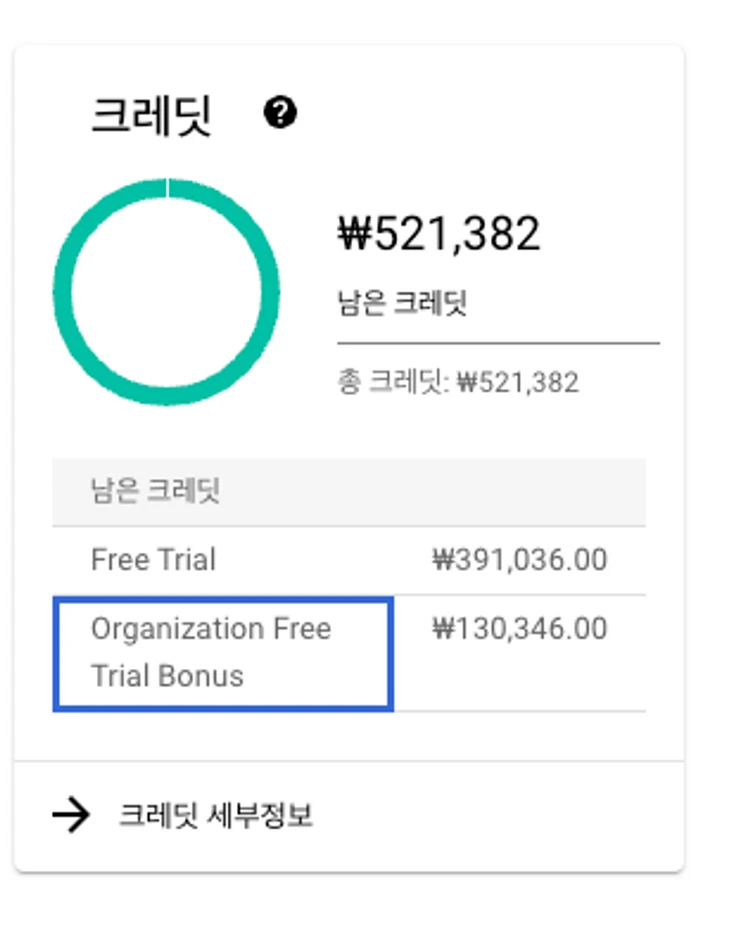 - 최종적으로 Cloud ID admin으로 사용가능과 GCP ($400 / 한화기준 50만원)정도의 크레딧 사용가능한 것을 확인할 수 있습니다.