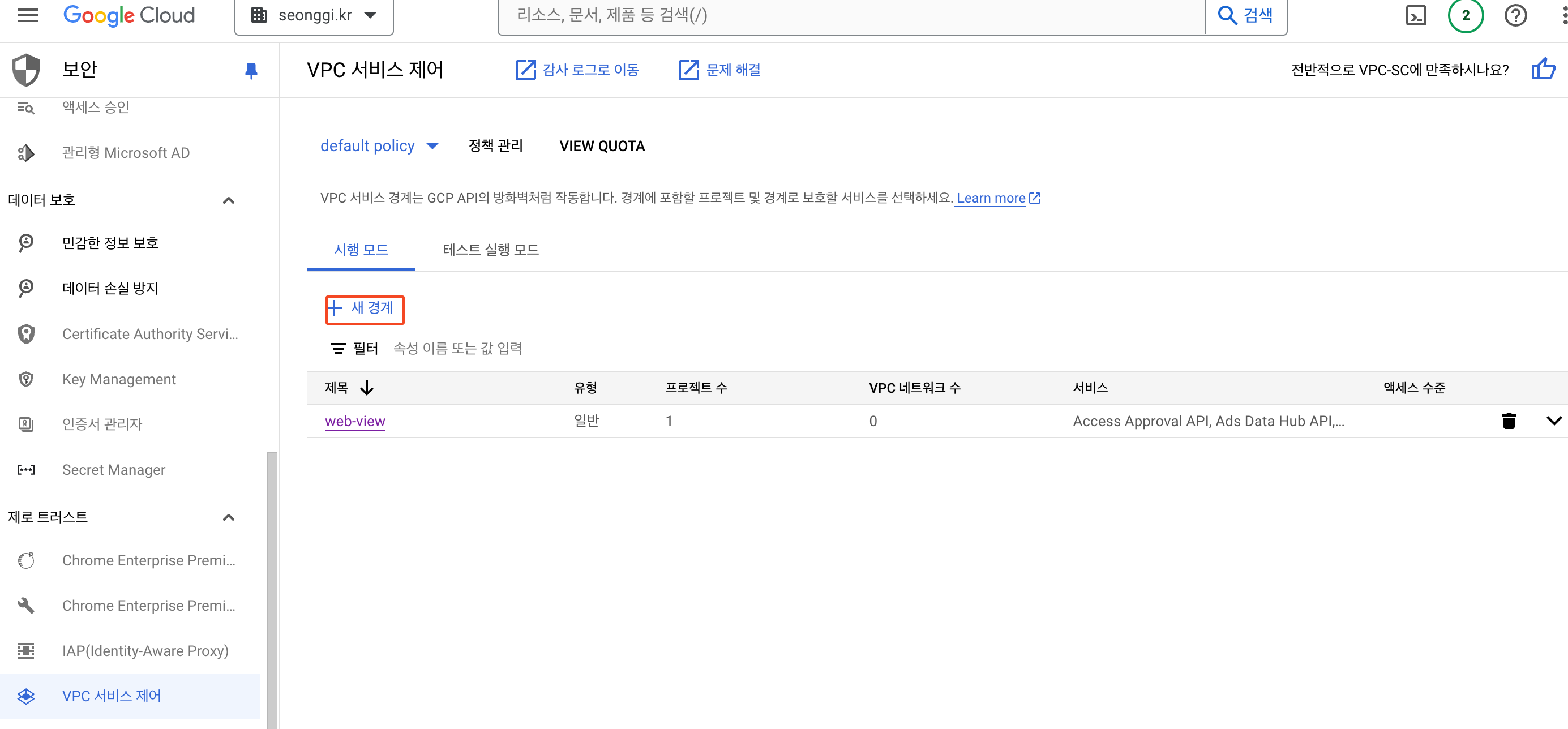 이제 생성을 눌러 VPC 서비스 경계를 생성합니다.