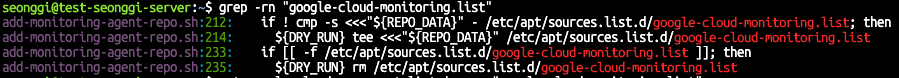 명확하게 확인하기 위해 google-cloud-monitoring.list 파일내용을 확인해보려 했으나, 인스턴스를 새로 생성 후 테스트 했으나 해당파일이 생성되지 않았습니다.