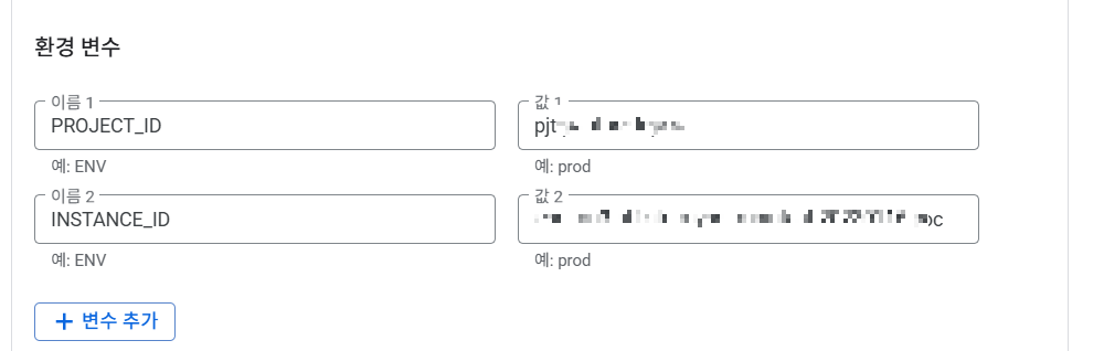 - 코드에 직접 프로젝트, CloudSQL명을 넣지 않고 환경변수로 실행하기에 아래의 방법으로 진행합니다.