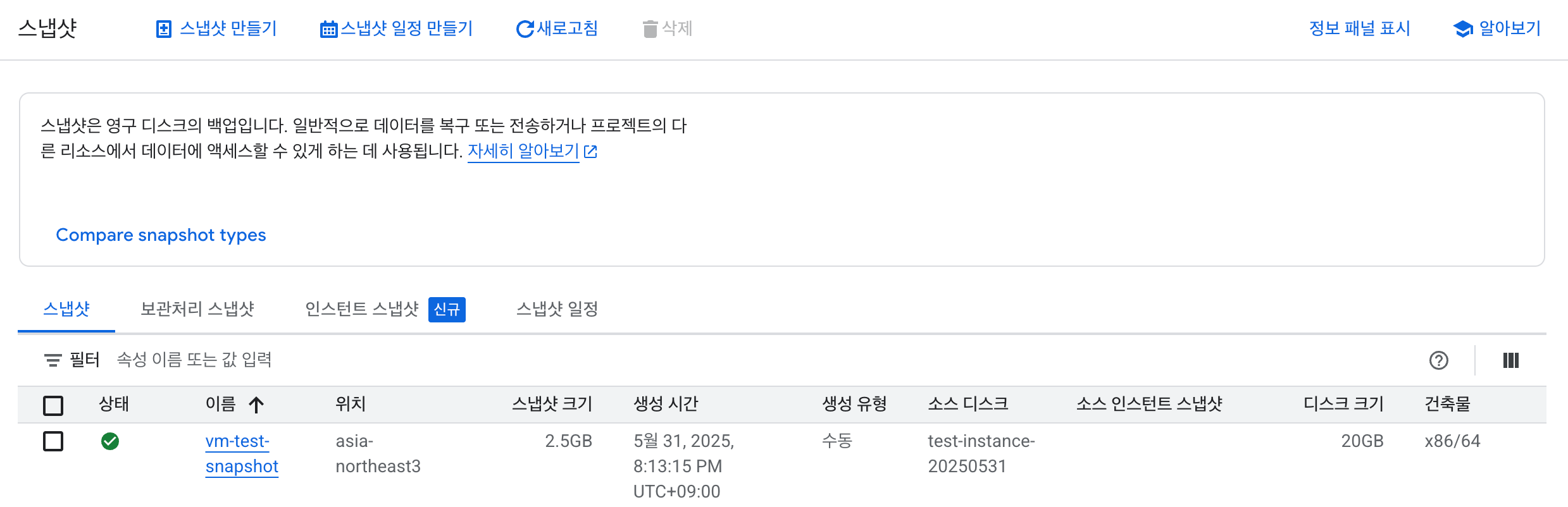스냅샷이 생성된 것을 확인합니다.