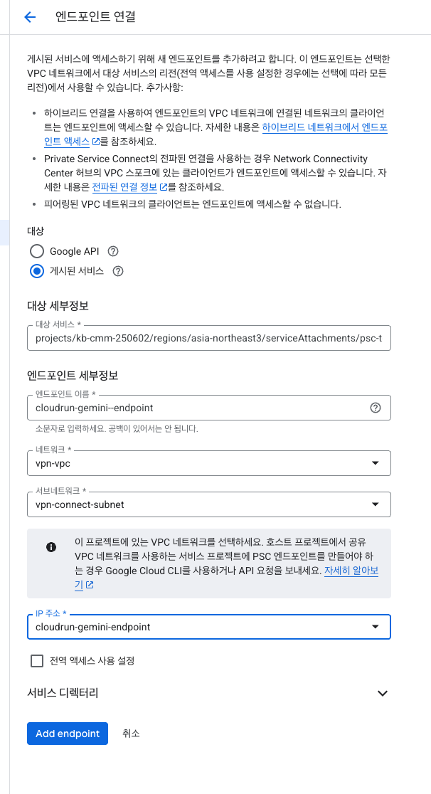 PSC 연결을 통한 Cloud Run to Google AI Studio Gemini API 호출방안