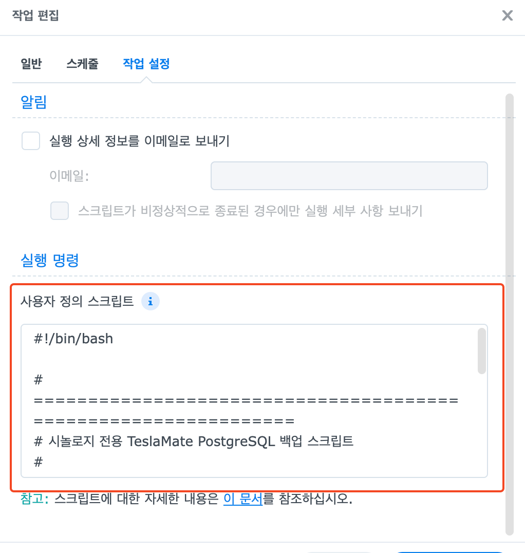 백업 경로 역시 본인의 시놀로지 환경에 맞추어서 BACKUP_DIR에 경로를 지정해줍니다.