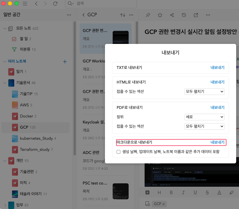 Notion, Upnote에서는 편하게 문서를 작성할 수 있습니다.